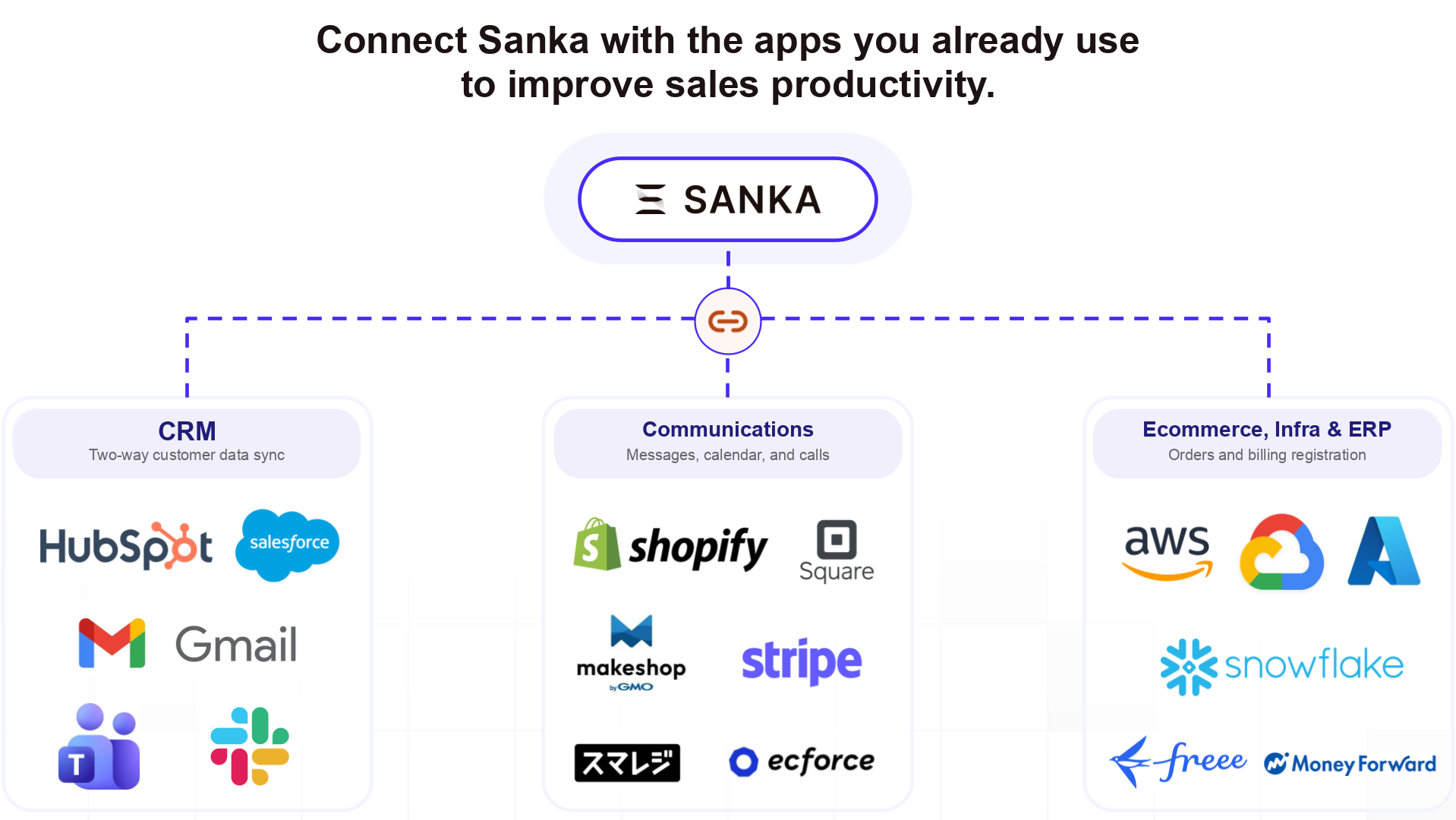 Below is a list of services that can be connected with Sanka, along with related integration guides.